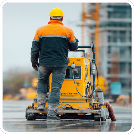 a concrete power trowel, also known as a power float or finishing machine, used to smooth and level concrete surfaces. Commomnly used for large residential and commercial projects like driveways, warehouses, and parking lots.